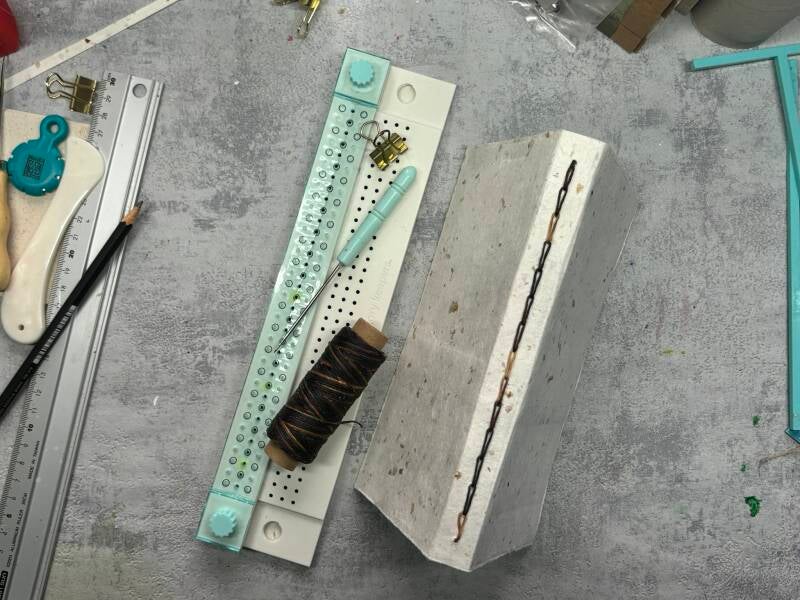 Manchmal ist auch ein Heft völlig ausreichend, etwa für einen Kurztrip oder einen freien Tag. Wenn ich nur eine Signatur einbinden möchte, die aus maximal zehn Blatt besteht, nutze ich am liebsten einen Zierstich, auch Kettenstich genannt.