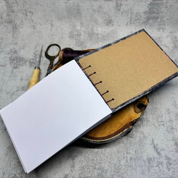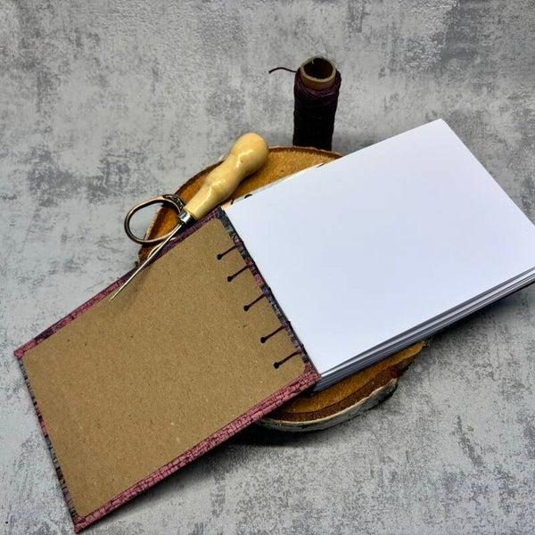 Gebunden mit gewachsten Garn in der Farbe Lila. Achtung Bindung nicht genau Mittig (siehe Bilder) hält aber natürlich dennoch super gut!
