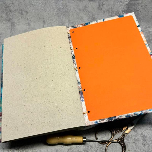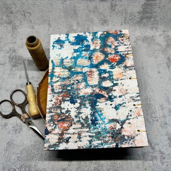 2mm starken Graupappe mit einen Original Monodruck bezogen. Ein Unikat.