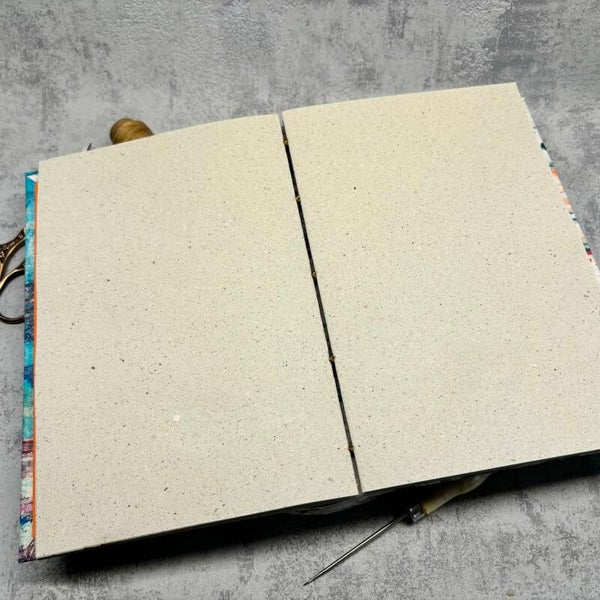 Koptische Bindung mit einen gewachsten braunen Garn.
